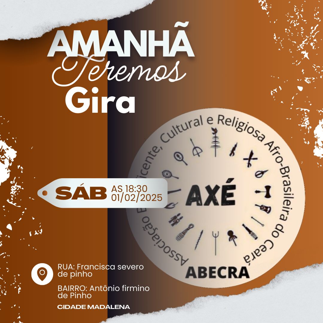 ponto de cultura nacional a Associação Beneficente, Cultural e Religiosa Afro-Brasileira do Ceará, legalizada judicialmente em cartório oficio notas e registro de Madalena Assis Bezerra em 27/11/2020, fundada em 26 de agosto de 2020, tendo à frente como presidente, Josimar Alves Torres Serafim (pai Josimar de Tranca Rua). Nosso trabalho social foi reconhecido no municipio de Madalena-Ce com a LEI MUNICIPAL-682/2023 UTILIDADE PÚBLICAMUNICIPAL ,DECLARA DE UTILIDADE PÚBLICA ESTADUAL LEI N.° 19.033, DE 11.09.24 A ASSOCIAÇÃO BENEFICENTE, CULTURAL E RELIGIOSA AFRO-BRASILEIRA DO CEARÁ ,trabalha na perspectiva da construção de políticas públicas para a Igualdade Racial e para o Povos de Terreiro. Tem como missão a luta pelos Direito Humanos, com ênfase nas questões de gênero e raça, a partir de uma articulação entre os movimentos sociais e instituições governamentais e não-governamentais, que trazem em suas diretrizes a luta pela promoção da igualdade em comunidades tradicionais e assuntos afins. Nossa Associação vem divulgando a nossa Cultura Afro-brasileira no tocante às religiões de Matrizes Africanas e afro-brasileira, desenvolvendo atividades Culturais e Sociais em Madalena no estado do Ceará, para dar visibilidade a essa Cultura Ancestral e suas nuances regionais. Neste processo, se dispõe a atividades de difusão dessa Cultura Tradicional dos Povos de Terreiro do Sertao Central e Sertao Caninde para estabelecer vínculos com a sociedade,preconceitos contra a comunidade LGBTQIA+. na busca de fraternidade, solidariedade, e compreensão mútua entre as Culturas e religiões praticadas no Brasil e em especial na cidade de Madalena no Estado do Ceará.Vídeos