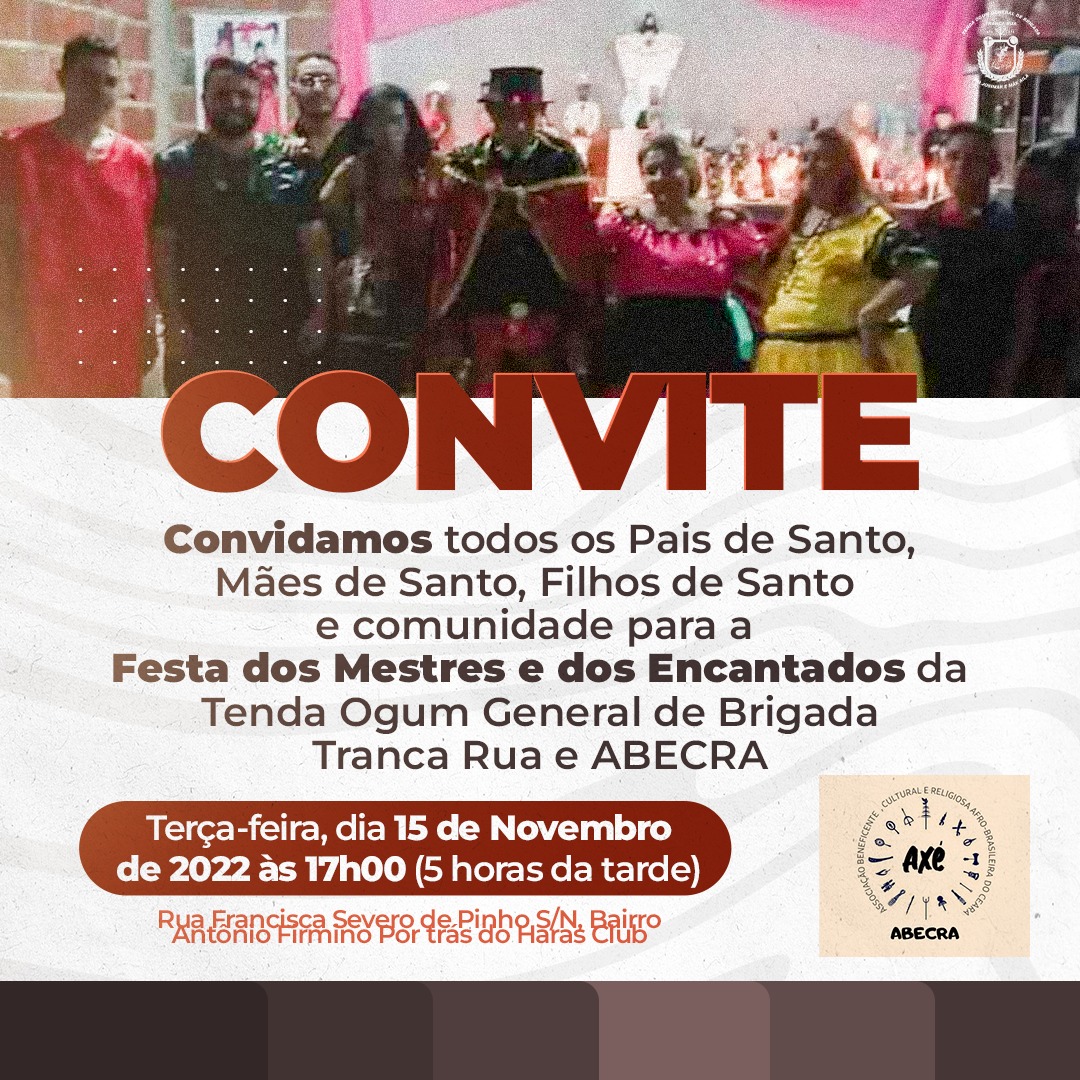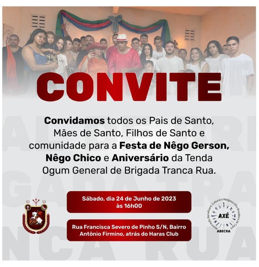 Informativo da associação ABECRA a Tenda de Ogum General de Brigada Tranca Rua,28/09/2023