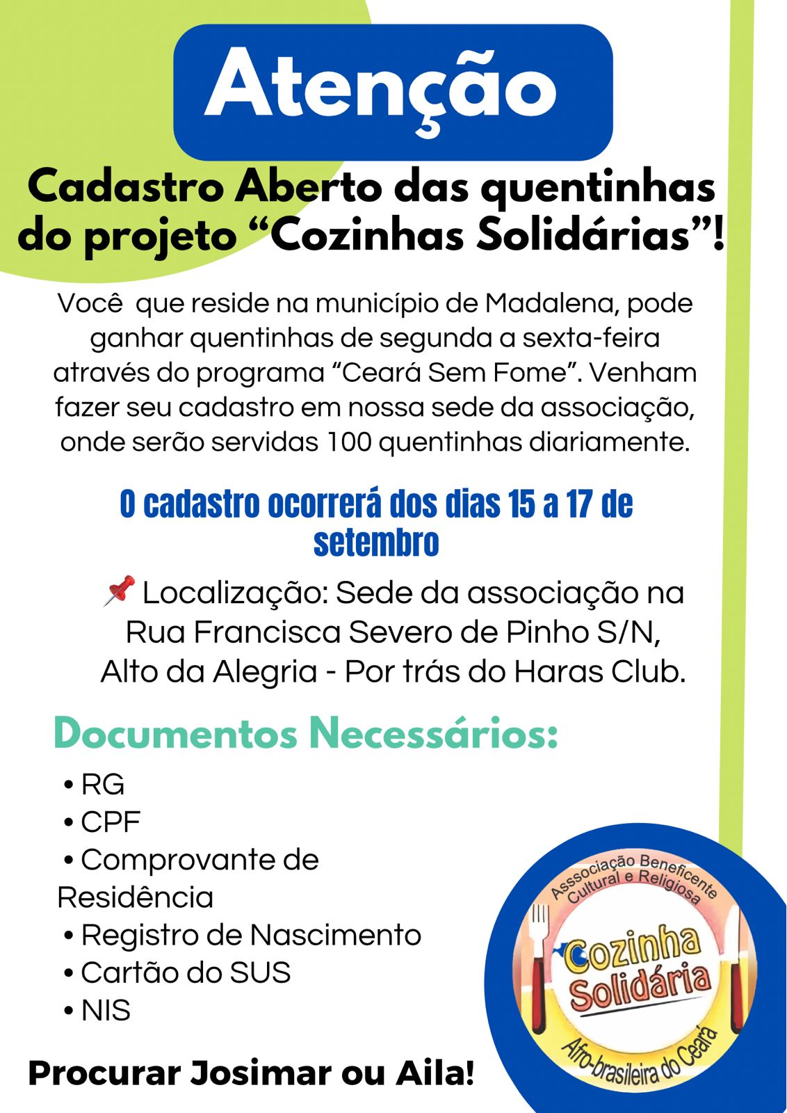 sobre Cozinha Solidária Mãe Aila sede da Associação ABECRA 15/08/2023