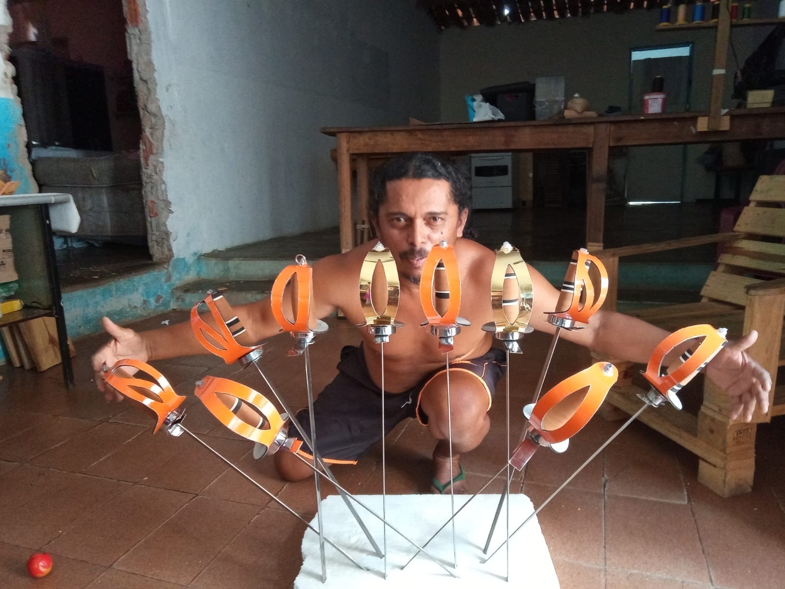 Ministrou oficinas de confecção de pernas de pau, brinquedos populares, cafuringas do palhaço Mateu e coroas do reisado, assim como oficinas de jogo de espadas e maneiro-pau em variados eventos e instituições como SESC, BNB, Conferências de Circo, Universidades e CRAS. Hoje mantém um trabalho semanal no Centro SOCIOEDUCATIVO PADRE CÍCERO, onde é professor de arte, cultura e artesanato popular.