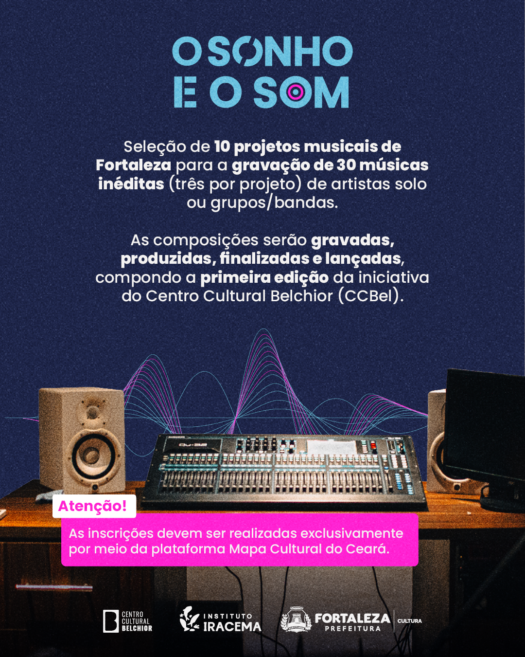 O Centro Cultural Belchior, equipamento da Secretaria da Cultura de Fortaleza (Secultfor) gerido em parceria com o Instituto Cultural Iracema (ICI), lança a primeira edição do projeto O Sonho e o Som, voltado à produção musical.